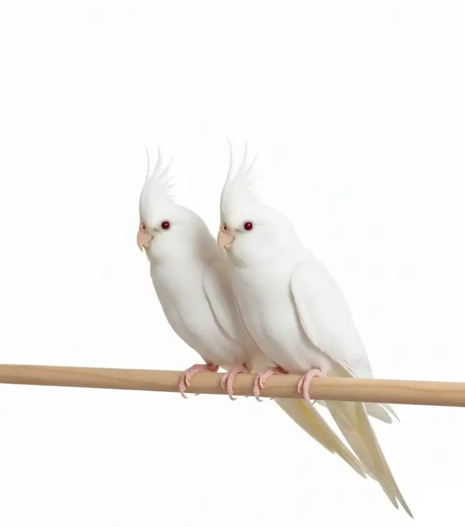 The Albino Cockatiel is one of the most stunning and rare cockatiel mutations, known for its pure white feathers and striking red eyes. This beautiful color mutation has become highly popular among bird enthusiasts due to its elegant appearance, calm nature, and easy compatibility as a pet.